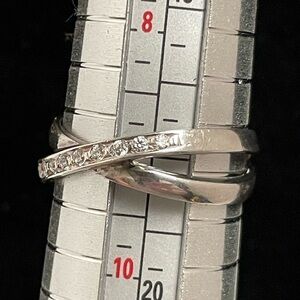 Elegant Silver Cubic Zirconia Crossover Ring Size 9