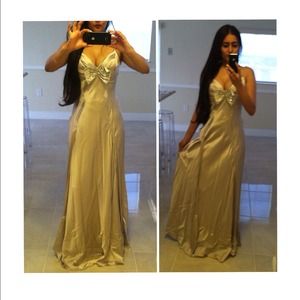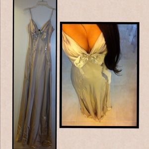 Gorgeous full length gown. For sizes XS-S & 0-1. Silver silky material with crystal accents. Brand new, tags still attached, never been worn except to take these pics!