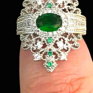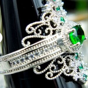 These exquisite earrings feature a stunning green gemstone set in a silver design. Perfect for adding a touch of elegance to any outfit.