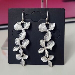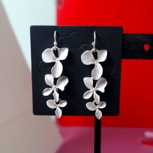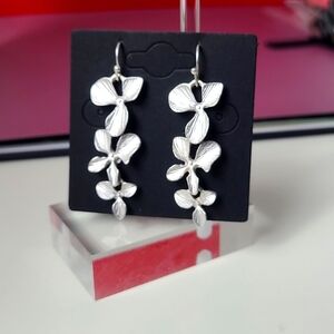 These elegant silver floral earrings add a touch of sophistication to any outfit. Perfect for any occasion.