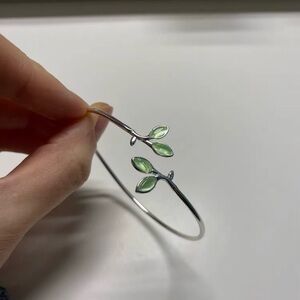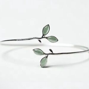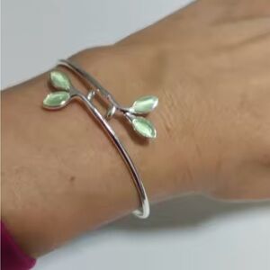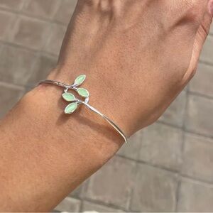 Elegant Silver Green Opal Leaf Twigs Branch Bracelet