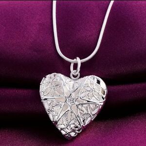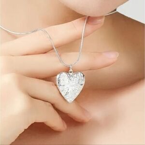 Elegant Silver Heart Pendant Locket Necklace 22 Inches