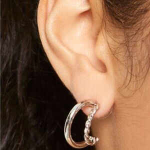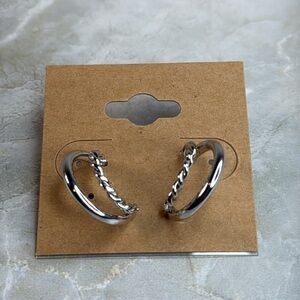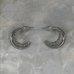 These elegant silver hoop earrings add a touch of sophistication to any outfit. Perfect for any occasion.