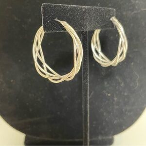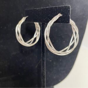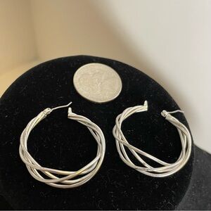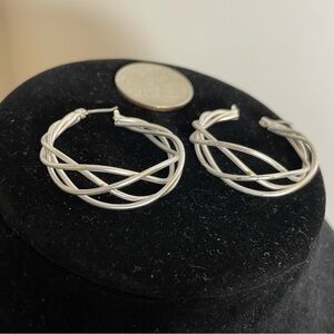 These woven-style frosted silver color hoop earrings add a touch of sophistication to any outfit. Perfect for any occasion. 2” diameter. Excellent preowned condition.