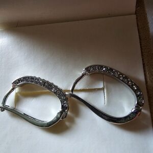 Stylish silver small hoop earrings adorned with sparkling crystals. Perfect for any occasion. simulated stones and metal.