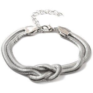 This elegant silver bracelet features a unique knot design, perfect for adding a touch of sophistication to any outfit. Its sleek and modern look makes it a versatile accessory for any occasion.