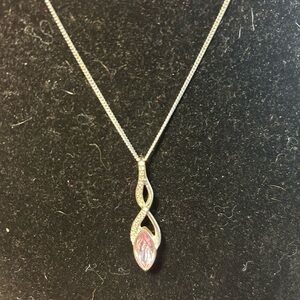 This elegant silver necklace adds a touch of sophistication to any outfit. Perfect for any occasion.