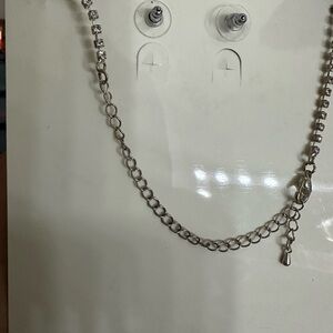 This stunning silver jewelry set features a beautifully designed necklace and matching earrings, perfect for any occasion. The intricate detailing adds a touch of elegance to your outfit.