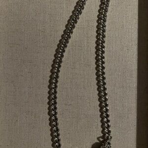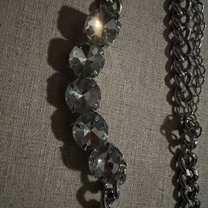 This elegant silver necklace features stunning clear crystals, perfect for adding a touch of sophistication to any outfit.