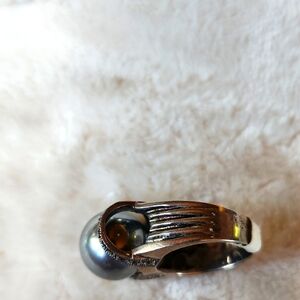 This elegant silver ring features a stunning pearl centerpiece, perfect for adding a touch of sophistication to any outfit.