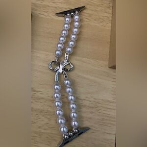 This elegant silver pearl band features a stunning bow design, perfect for adding a touch of sophistication to any outfit.