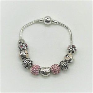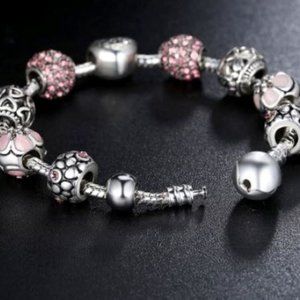 Make that special lady in your life happy with this beautiful silver plated charm bracelet! The cubic zirconia stones set in the flower and heart themed beads that sparkle in the sunlight and make this a perfect holiday, birthday, Mother's Day, Anniversary or just because gift. Or ladies – treat yourself because you deserve it.