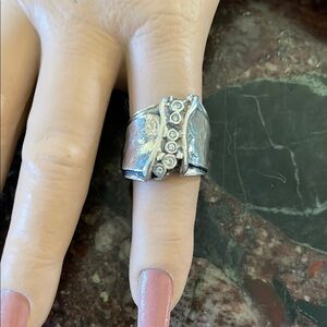 This is a Silpada classic - size 8- R1441 Retired Zirconia ring, made of sterling silver with six cubic zirconias on a wide, hammered ban