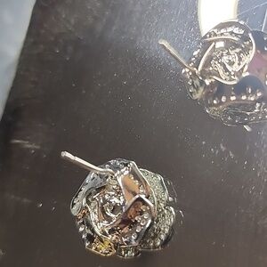 These stunning silver rose stud earrings add a touch of elegance to any outfit. Perfect for any occasion.