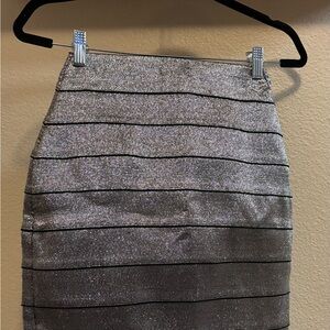 Shimmer in style with this elegant silver skirt. Perfect for a fun night out. Only worn once on a trip to Vegas.