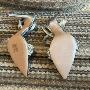 Azalea Wang Step out in style with these stunning silver strappy heels. Adorned with sparkling crystal embellishments, they add a touch of glamour to any outfit. Perfect for special occasions or a night out. Size 8.5 used
