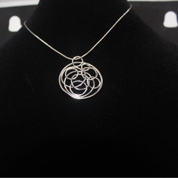 Stylish silver pendant necklace with a unique circular design. Perfect for any occasion.