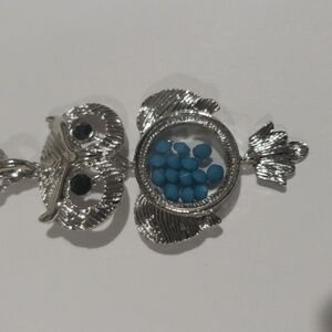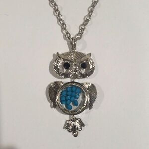 This enchanting necklace features a silver-tone owl pendant paired with vibrant turquoise beads. The owl design is intricately crafted with detailed features, and the turquoise beads add a pop of color, making it a unique statement piece. Perfect for adding a whimsical touch to your outfit, this necklace is ideal for nature enthusiasts or those who love charming, boho-inspired jewelry.