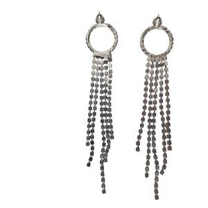 Elegant Silver Tone Rhinestone Tassel Dangle Earrings Statement Jewelry