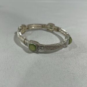 Elegant Silver Toned Stretch Bracelet Green Gemstone