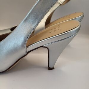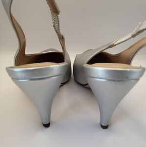 Step out in style with these elegant silver pumps. Perfect for any occasion, these shoes offer both comfort and sophistication. About a 2in heel. I wore these a handful of times , if that. Has some wear and scuffs as seen in 📸.