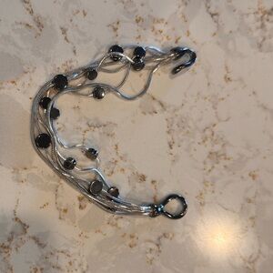 Stylish bracelet featuring silver strands with black beads. Perfect for any occasion. Beads are slightly magnetic for health purposes