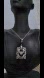 This stunning necklace features an elegant silver and black pendant, perfect for adding a touch of sophistication to any outfit. The intricate design showcases timeless style and elegance.