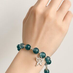 This stunning bracelet features elegant blue beads complemented by silver accents. Perfect for adding a touch of sophistication to any outfit.