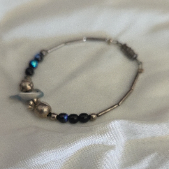 This elegant bracelet features a stunning combination of silver and blue beads.