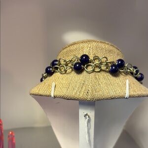 This stunning necklace features deep blue beads elegantly paired with a silver chain, perfect for adding a touch of sophistication to any outfit.