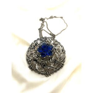 Elegant Silver and Blue Floral Pendant Necklace