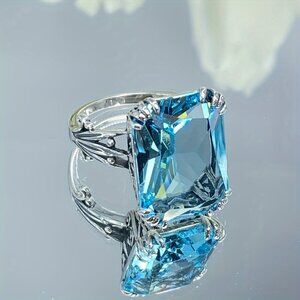This exquisite silver ring features a stunning blue gemstone, perfect for adding a touch of elegance to any outfit.