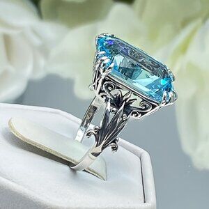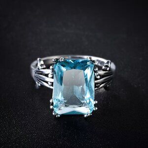 This exquisite silver ring features a stunning blue gemstone, perfect for adding a touch of elegance to any outfit.