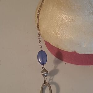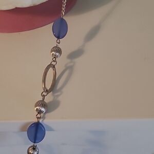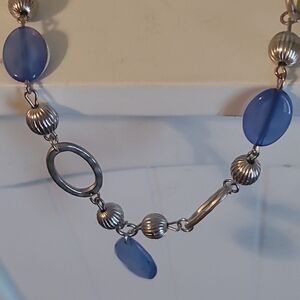 This elegant necklace features stunning blue stones set in a sleek silver design. Perfect for adding a touch of sophistication to any outfit.