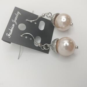Elegant Silver and Cream Drop Dangle Faux Pearl Earrings Acorn Feminine