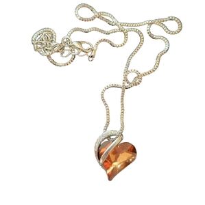 This stunning heart pendant necklace features a captivating gold crystal encased in a sleek silver setting. Perfect for adding a touch of elegance to any outfit.
