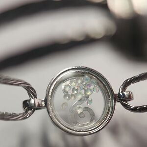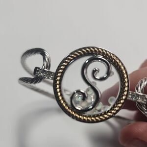 This stunning bracelet features a sophisticated blend of silver and gold tones, perfect for adding a touch of elegance to any outfit. The intricate initial design makes it a unique and personal accessory.