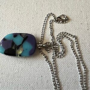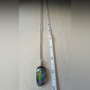 This stunning pendant necklace features a captivating blend of green and silver hues. Perfect for adding a touch of elegance to any outfit.