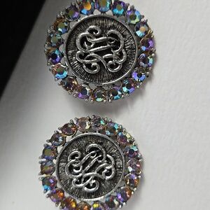 Add a touch of elegance with these stunning silver tone vintage clip-on earrings, featuring a vibrant array of multicolor aurora borealis rhinestones Perfect for any occasion.