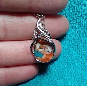 Elegant Silver and Orange blue white marble teardrop wire dangle Swirl E…