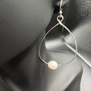 These elegant silver hoop earrings feature a beautiful pearl accent, perfect for adding a touch of sophistication to any outfit.