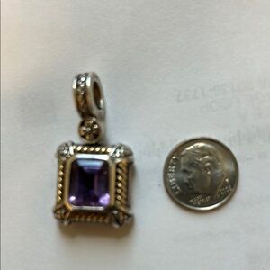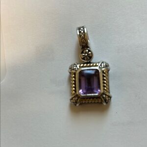This elegant pendant features a stunning purple gemstone set Amethyst in a detailed silver sterling silver frame and 18k gold.Perfect for adding a touch of sophistication to any outfit.