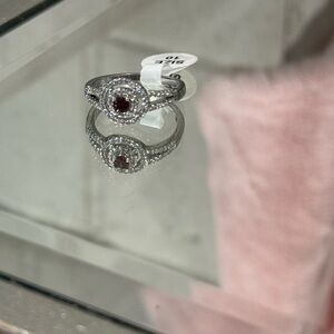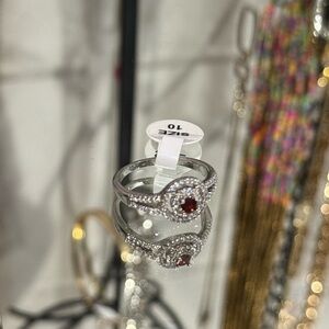 Elegant Silver and Red split shank embezzled halo Ring Size 10 promise ring gift