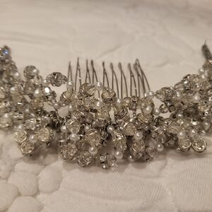 Add a touch of elegance to your bridal look with this stunning silver and pearl hair comb. Perfect to add to a bun or French twist. Comb may be uncovered to convert to jewelry by bride and or her maid of honor and mother. Such a special piece. Purchased from Roma Sposa Bridal Atelier Birmingham, MI.