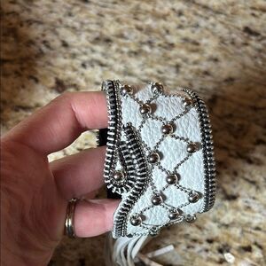 This elegant bracelet features a stunning combination of silver and white, perfect for adding a touch of sophistication to any outfit. The intricate design and tassel detail make it a standout piece in your jewelry collection.