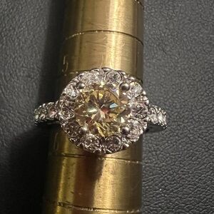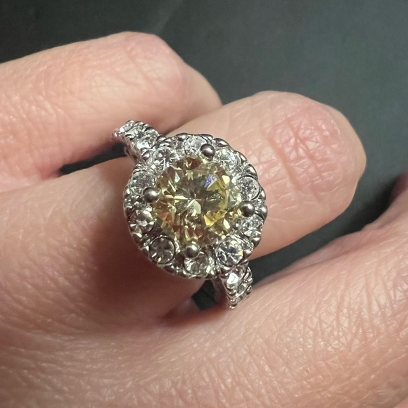 This stunning ring features a brilliant yellow diamond surrounded by sparkling silver accents. Perfect for adding a touch of elegance to any outfit.