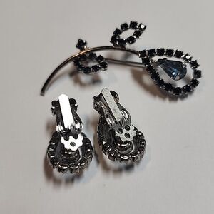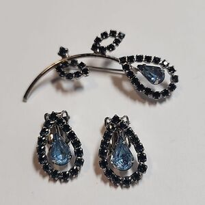 Elegant Silver and Blue Flower Brooch With Matching Clip On Earrings