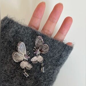 These elegant silver butterfly clip-on earrings add a touch of sophistication to any outfit. Perfect for any occasion.