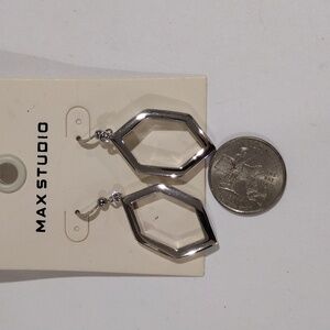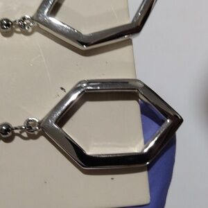 These silver-tone hexagon-shaped drop earrings add a touch of elegance to your look. These stylish earrings effortlessly enhance any outfit, perfect for casual wear or formal occasions.