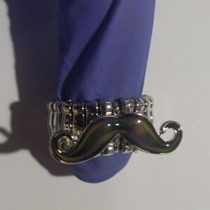 Elegant Silver tone Mustache Design Stretch Ring - Women's Fashion Jewelry